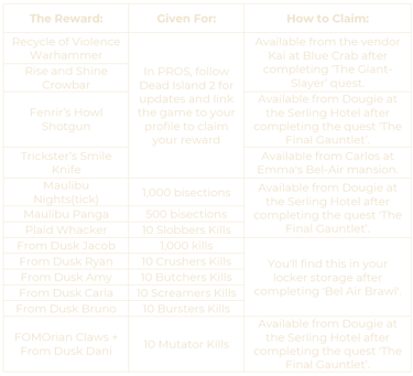 DEEP SILVER ACCOUNT REWARD LIST: DEAD ISLAND 2